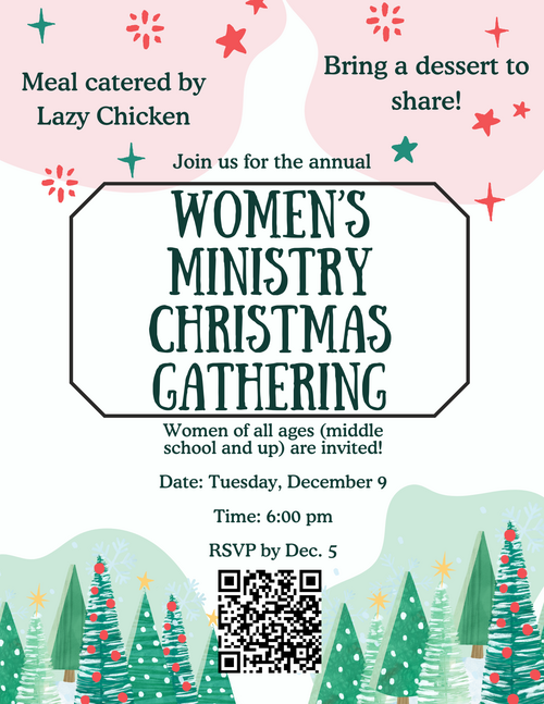 Ladies, consider coming to our annual Christmas Gathering on Tuesday, December 9th. It is always a wonderful way to kick off the season as we share special decor, good food, special fellowship, and encouraging words from one of our own! Sign up today!
